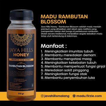 Java Hills Honey – Rambutan Blossom adalah madu mentah premium yang dihasilkan oleh lebah apis melifera yang memperoleh nektar dari bunga di perkebunan rambutan. Diolah secara tradisional, menjadikan segala kebaikan madu tetap utuh terkandung di dalamnya.